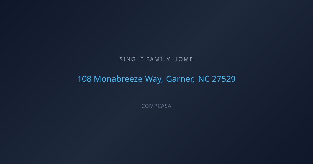 108 Monabreeze Way is presented as a single‑family property in Garner, NC — a property listing that demands a closer look. As the listing records stand today, this home is owner‑occupied and documentation, photos and interior specifications are not yet available in the public feed. That lack of public detail creates an unusual opportunity for an attentive buyer: the chance to be among the first to review interior condition, systems and layout with your contractor or inspector and shape the purchase conversation from a position of knowledge.